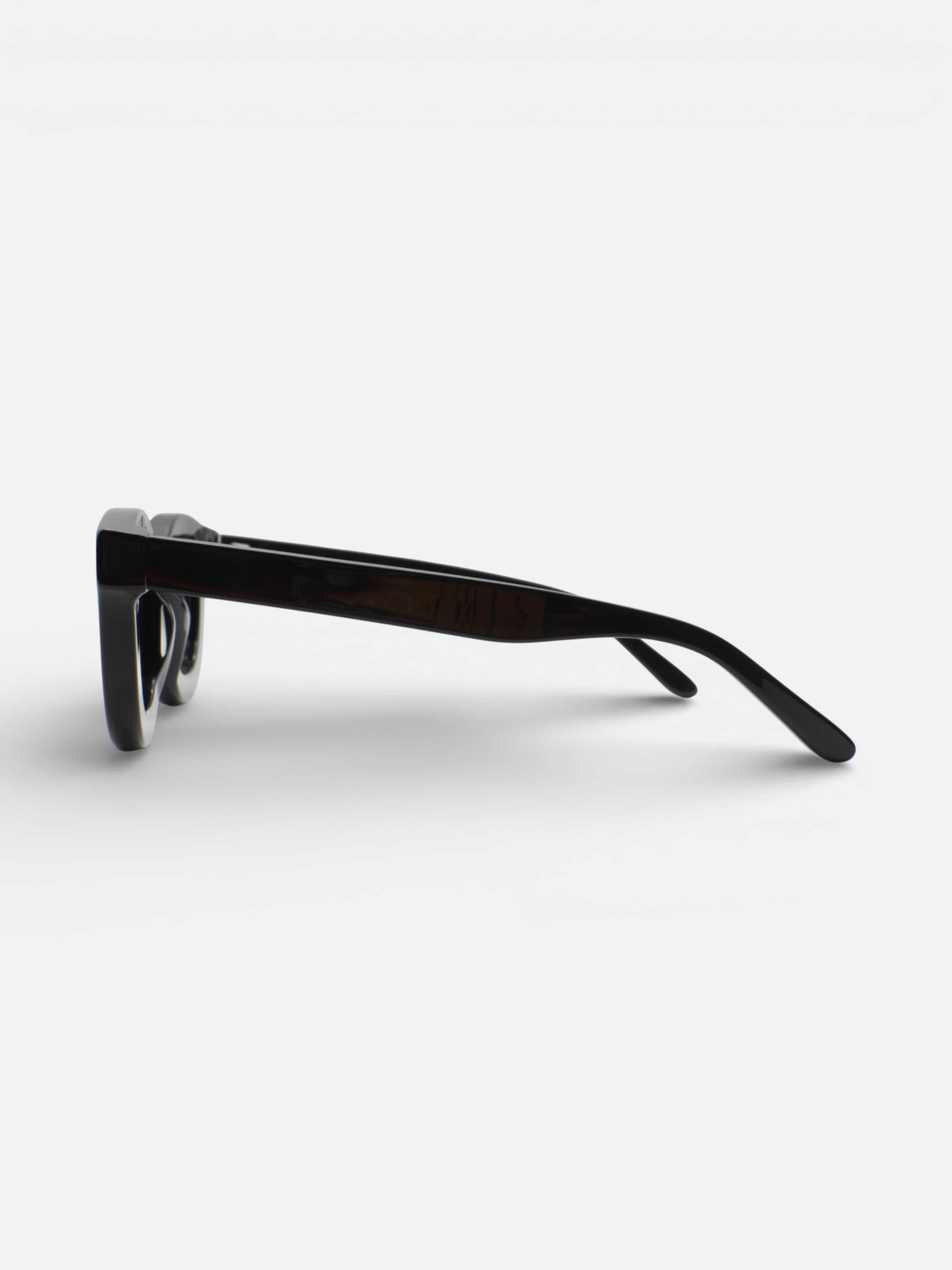 商品説明:重厚感のある上質アセテートフレームを使用したラグジュアリーな1本。リムを太くすることで存在感を演出。程よいカーブをかけた洗練されたモダンなシルエットが特徴。